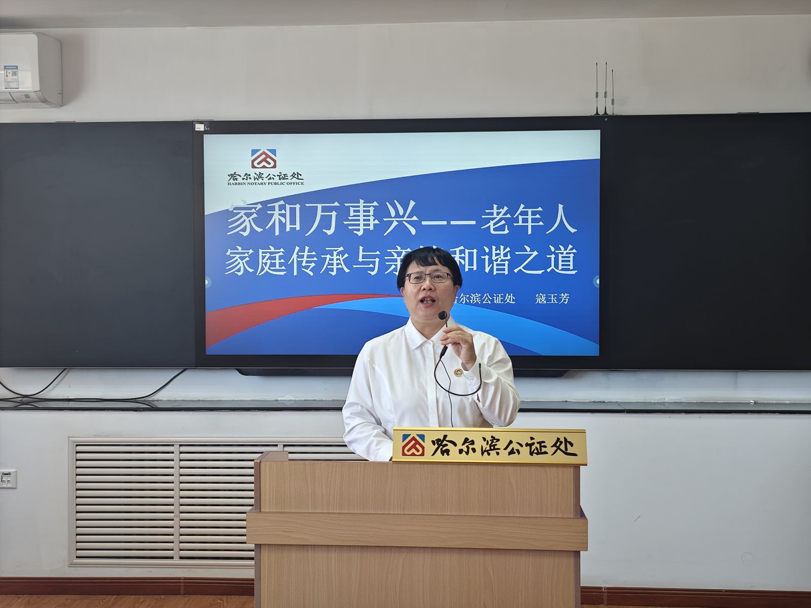 为深入贯彻落实“积极应对人口老龄化”国家战略,把开云(中国)老年教育品牌做深做实,9月17日,我校联合哈尔滨公证处、哈尔滨市老年学学会,在黑龙江省老干部大学颐园街校区共同推出银龄法治课堂——《家和万事兴:老年人家庭财产传承与亲情和谐之道》。